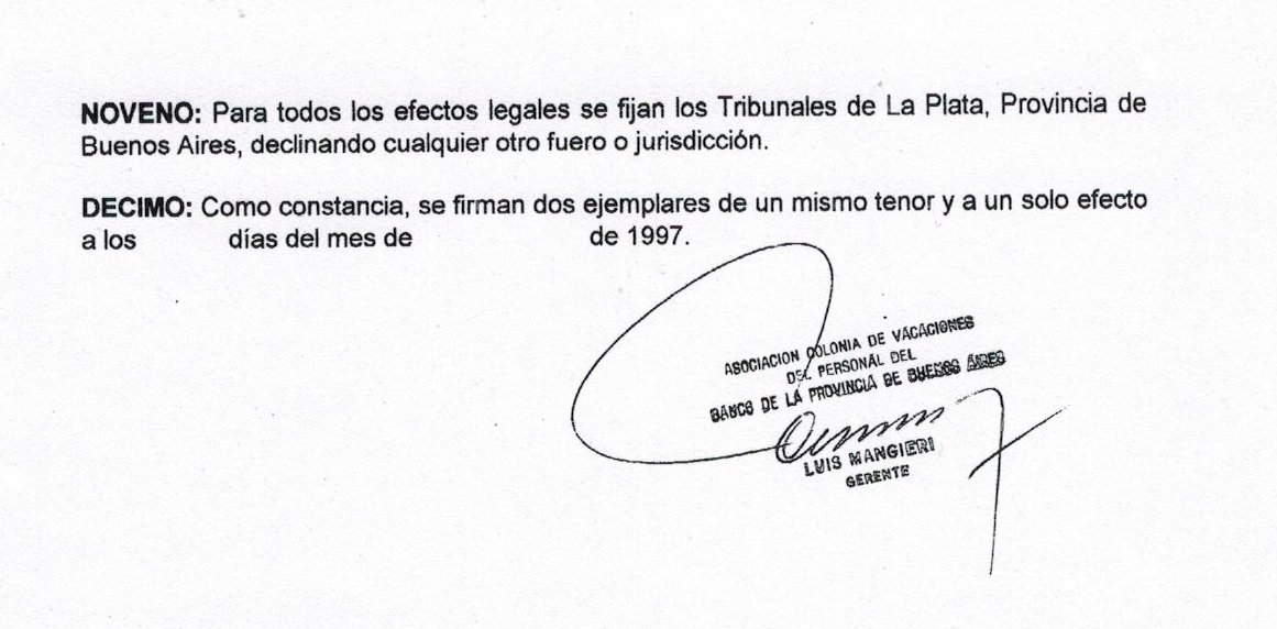 Noveno: para todos los efectos legales se fijan los Tribunales de La Plata, Provincia de Buenos Aires, declinando cualquier otro fuero o jurisdicción.